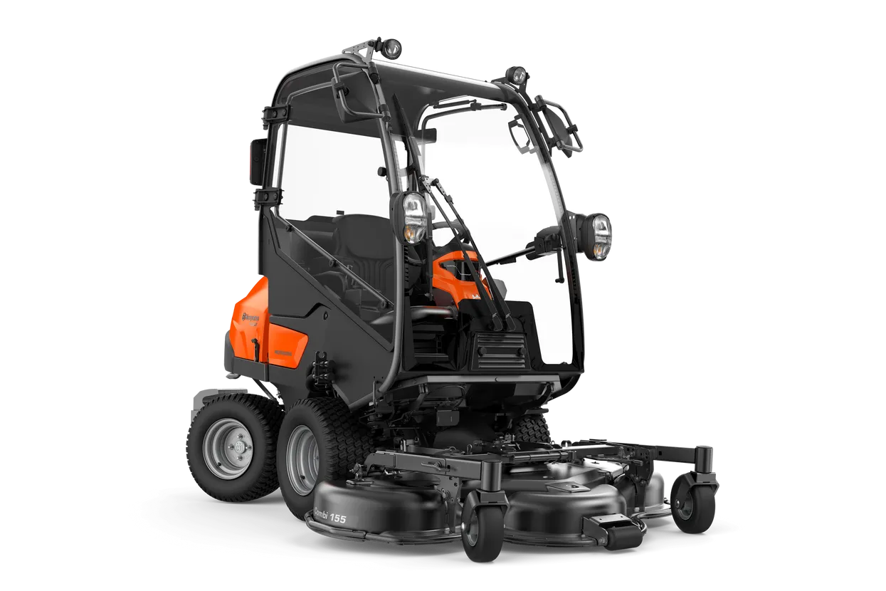 A high-capacity diesel-powered front mower with factory assembled cabin, offering unbeatable manoeuvrability and productivity in complex and narrow environments as well as in larger-sized areas all year round. The commercial graded transmission gives uncompromised traction and slope stability. The machine's compact size and high transport speed make it suitable both for stationary and mobile applications for municipalities, contractors, housing agencies etc. Thanks to the front-mounted cutting deck the operator has a perfect overview of the working area. This means optimised trimming ability as well as accessibility under benches, bushes etc. Long-life components for solid durability and less downtime. Attachments such as a utility bucket, broom, folding plough and cabin give increased productivity all year round. Husqvarna P 525D is delivered deckless and can be fitted with 132 and 155 cm Combi cutting decks.